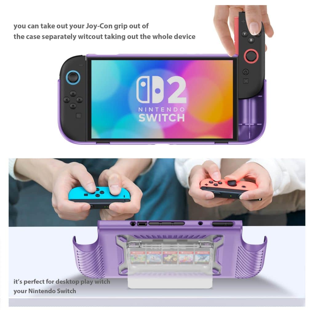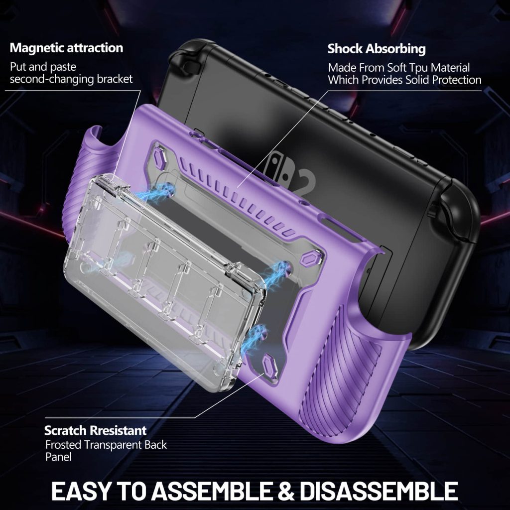 For Switch 2 Detachable Case – Stand & Card Slot Design with Multi-Layer Shockproof Protection | TPU + PC Hybrid Rugged Case