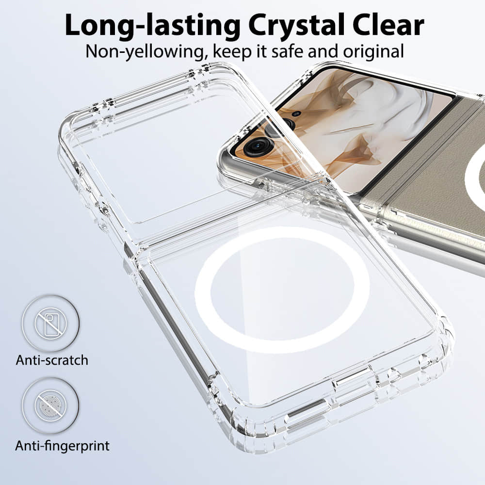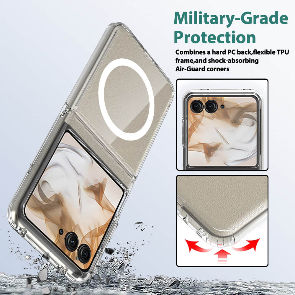 Moto Razr60 Ultra Foldable Case – Yellow-Resistant Transparent Cover with Strong Magnetic Wireless Charging | Full-Body Anti-Shock Protection for Hinge & Screen