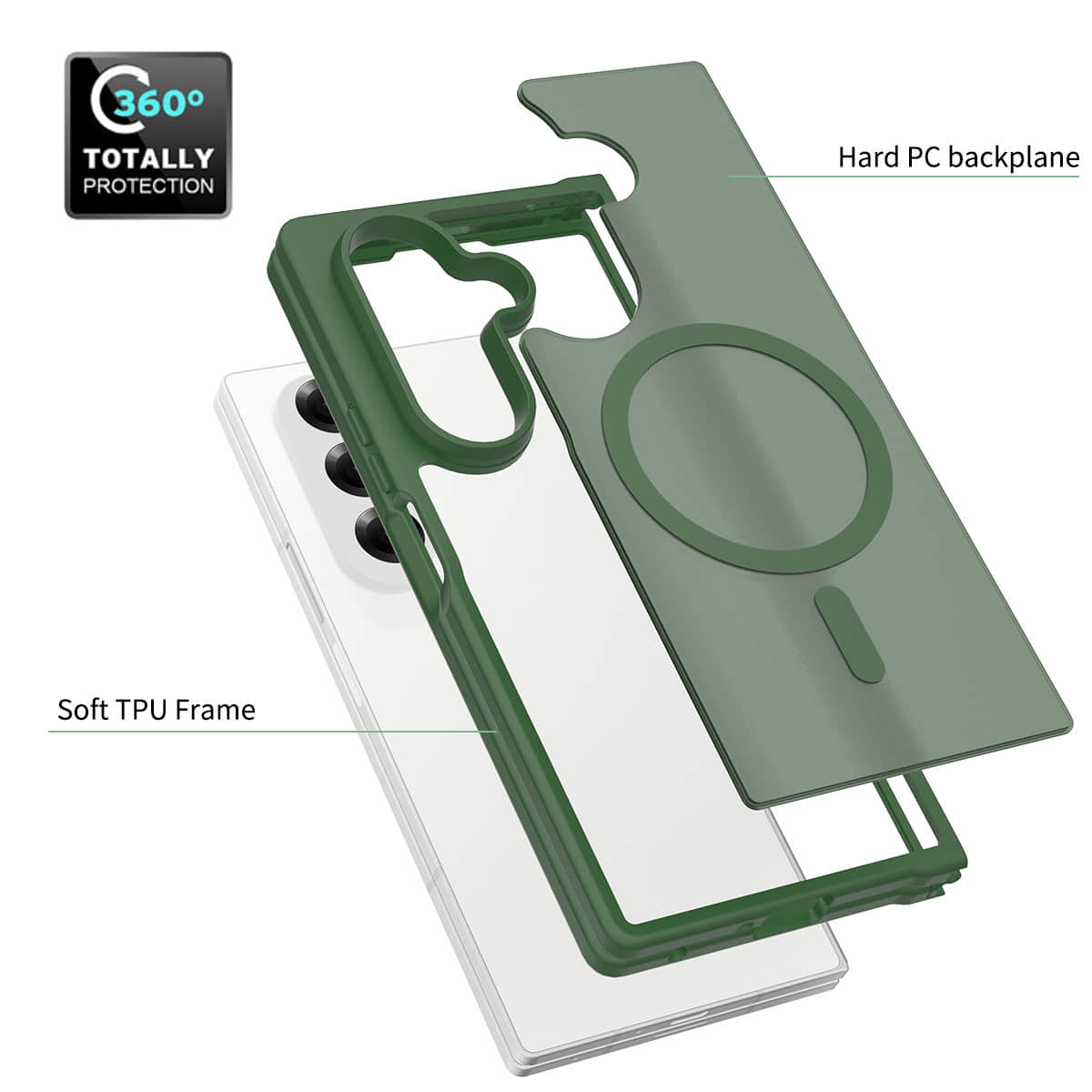 Samsung Z Fold7 5G Case – Soft-Touch Matte Magnetic Shockproof Cover | 1.5m Military-Grade Drop Test with Transparent Design Deep Green Color