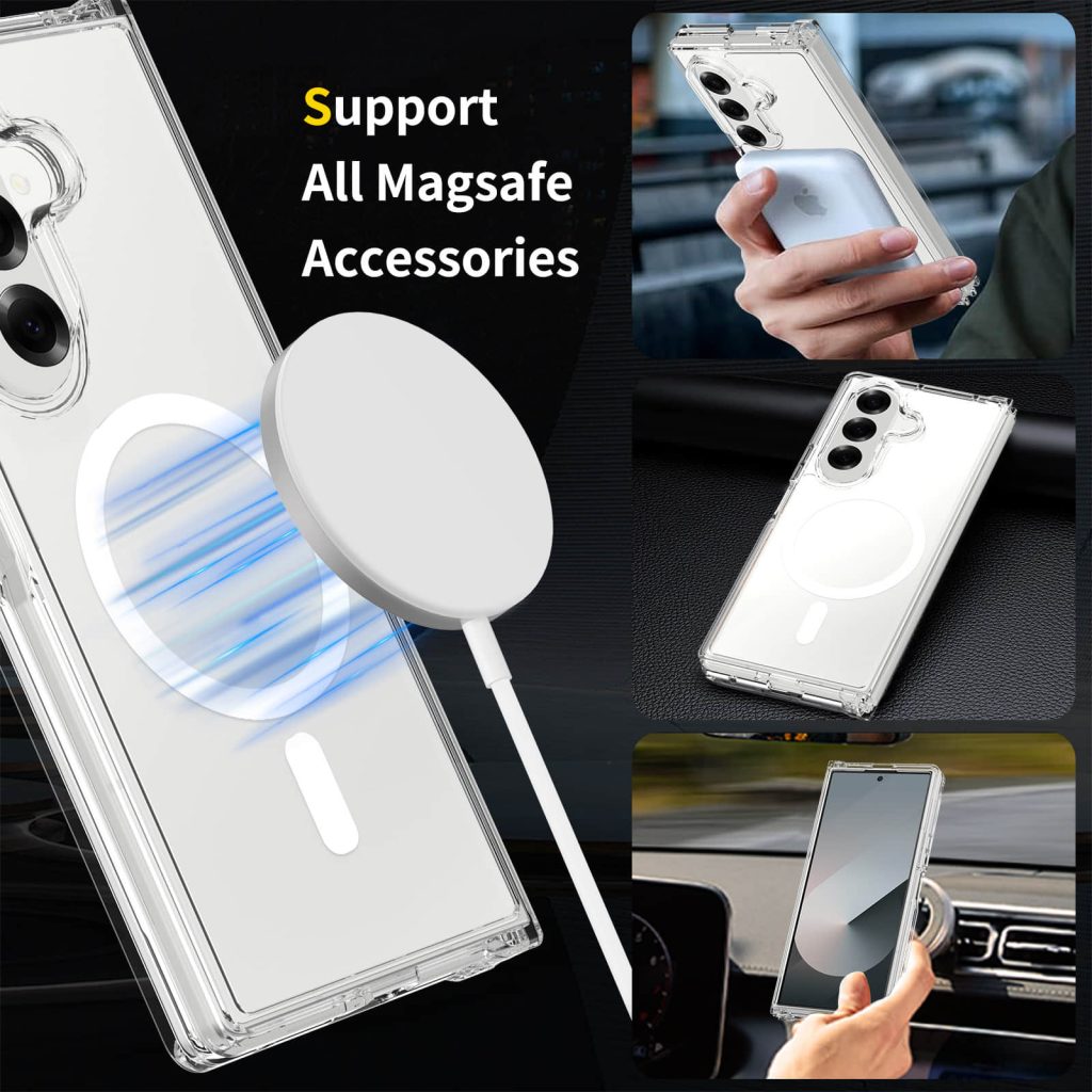 Samsung Z Fold7 5G & Z Flip6 Case – Transparent Magnetic Shockproof Cover | 1.5m Military-Grade Drop Test with Wireless Charging Compatibility