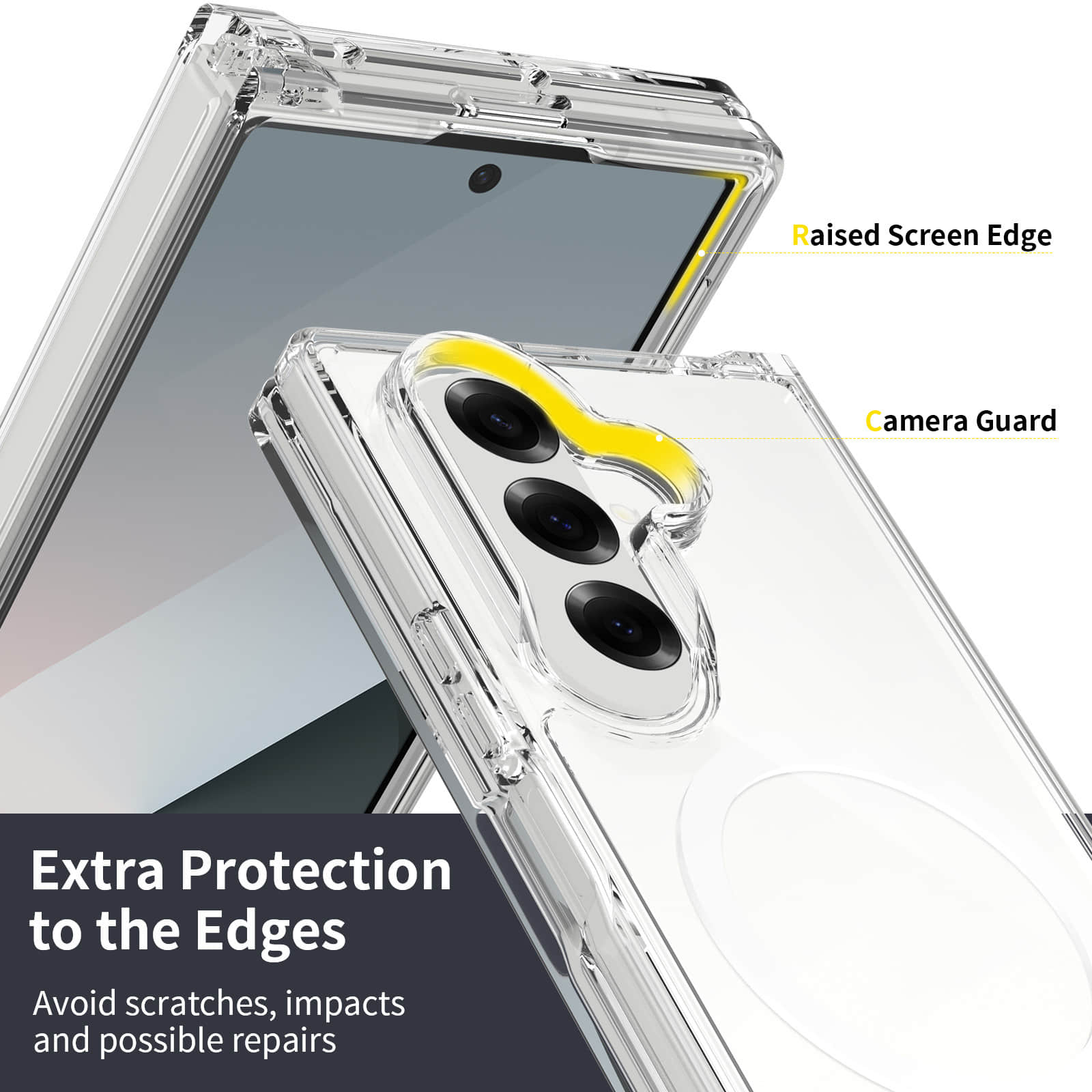 Samsung Z Fold7 5G & Z Flip6 Case – Transparent Magnetic Shockproof Cover | 1.5m Military-Grade Drop Test with Wireless Charging Compatibility